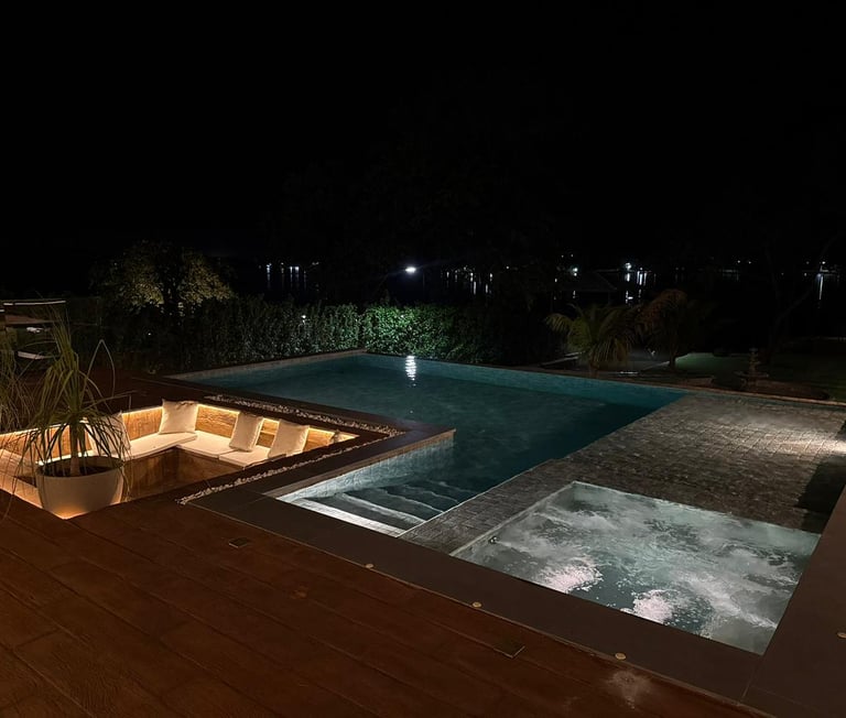 De dia ou de noite, a piscina é um show à parte. Tudo foi pensado para que vocês gostem tanto que queiram voltar logo e indicar o rancho às pessoas que amam.
