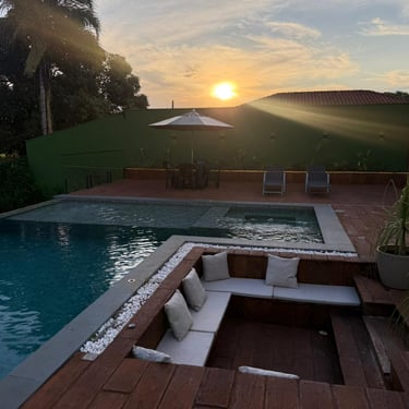A piscina com borda infinita se encontra com a vista do Rio Grande, enquanto a prainha e a hidromassagem criam o cenário perfeito para dias de sol, descanso e boas risadas.